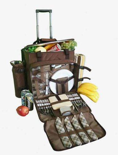 Keep everything cold or hot with the Ensemble picnic cooler on wheels deluxe service for 4! Take your family/friends out with this remarkable picnic cooler on wheel. Stay dry with the waterproof backed blanket. Keep nature beautiful by utilizing the reusable garbage bag. Hold a feast fit for your royal family/friends with the large insulated compartments.