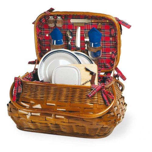 Brown rattan & bamboo Bombay style with dinner service for two. The exquisitely handcrafted Sandringham picnic basket was designed for the picnicking elite. The unique, original design is functional as well as elegant.